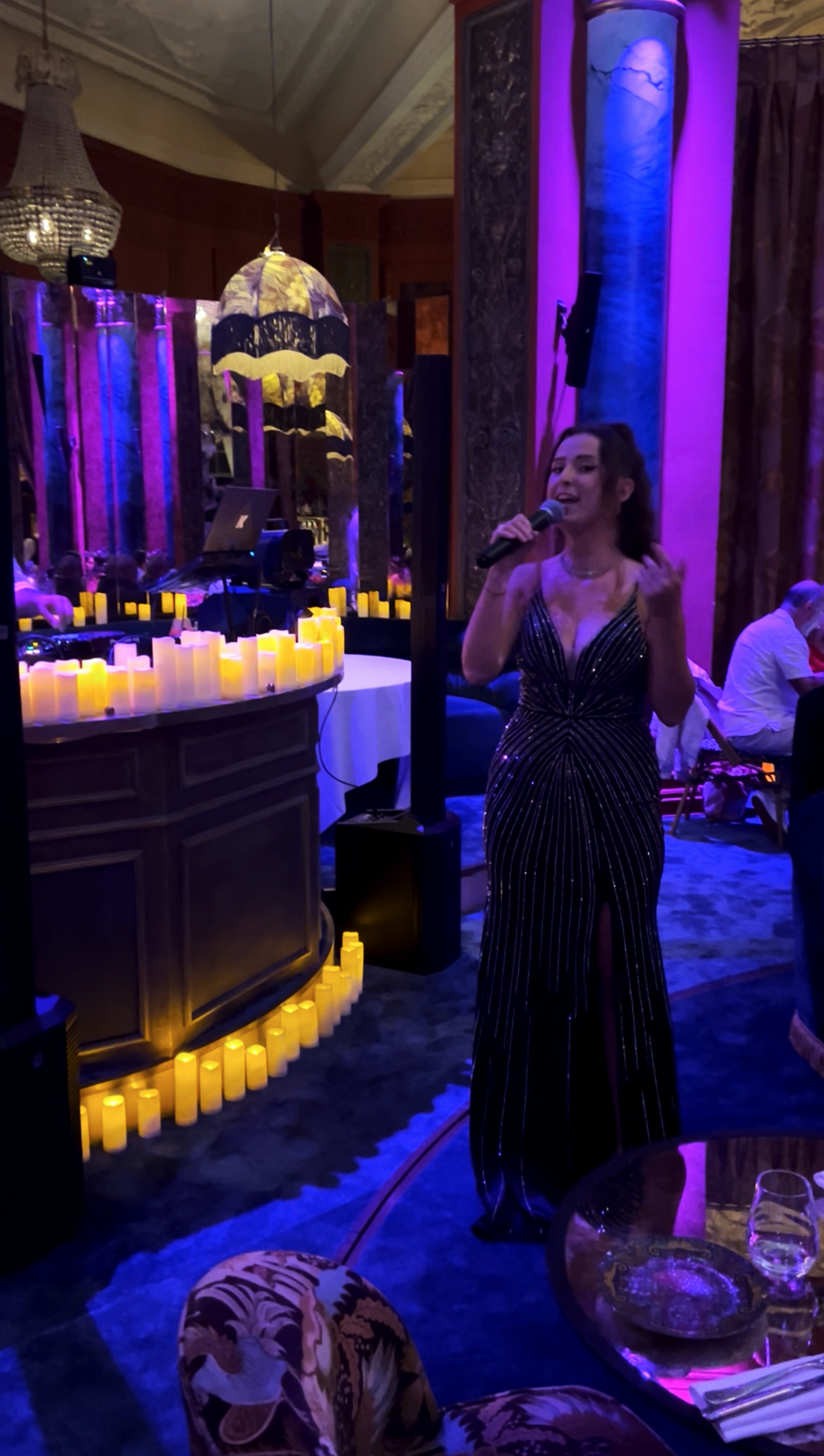 Un dîner à la lueur des bougies, rythmé par une chanteuse live et un DJ, pour une ambiance élégante qui se prolonge naturellement au fil de la soirée.